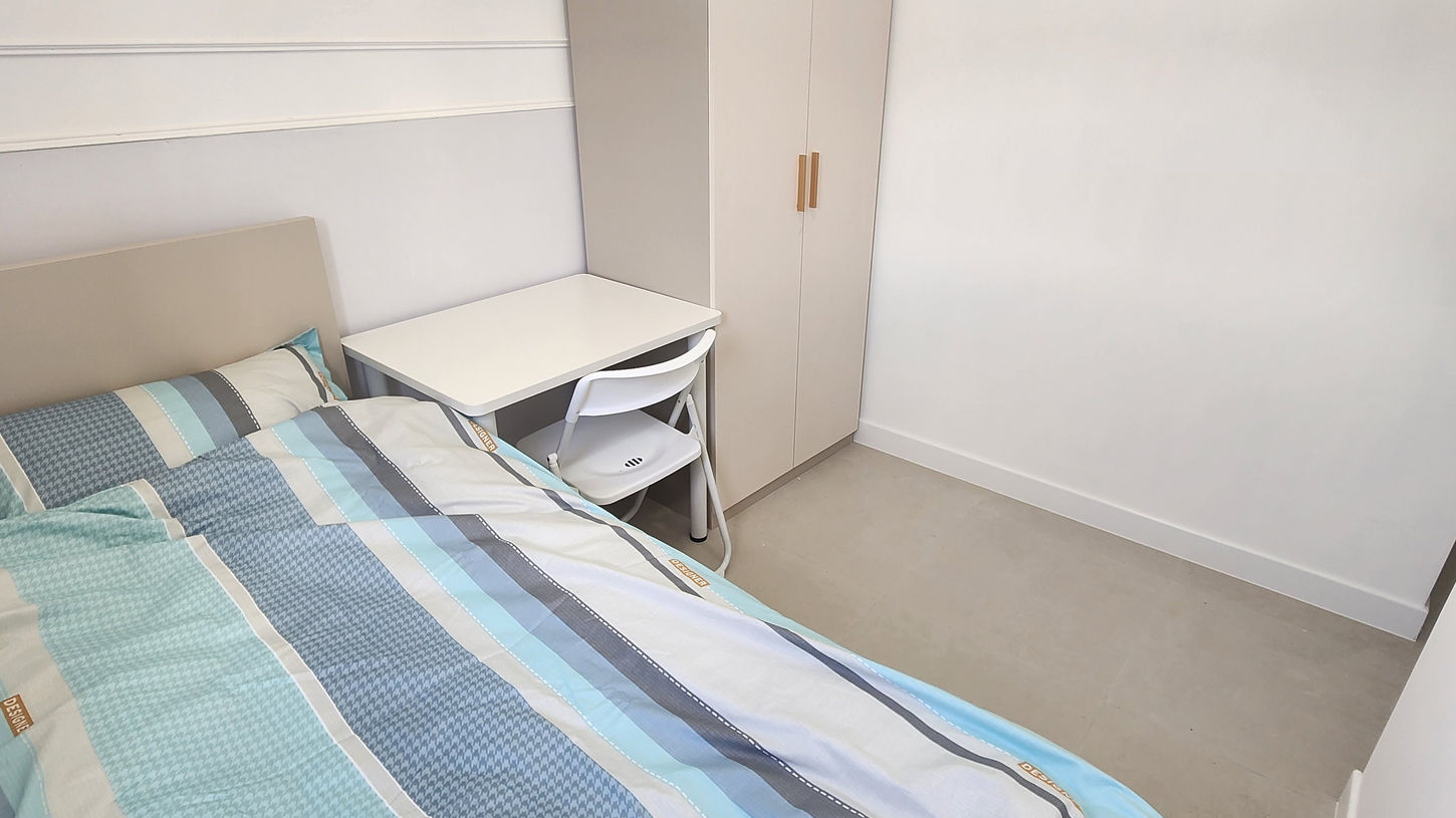 房间设施:普通加长床、床垫、书桌椅、衣柜、排插、冷气机、免费WIFI